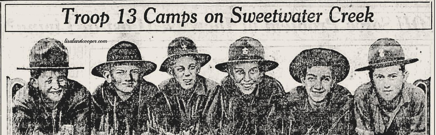 The group of Boy Scouts pictured below enjoyed a camping trip at Ferguson’s Mill at the end of August in 1919. One of the unidentified boys named Jack Branch wrote up a short description of their trip for the Atlanta Georgian stating the group was able to stay in the Factory Shoals area for a week. During their trip they boys did a bit of seining on Beaver Run Creek, held a snipe hunt ( I had to smile at that), and played in the water of Sweetwater Creek.