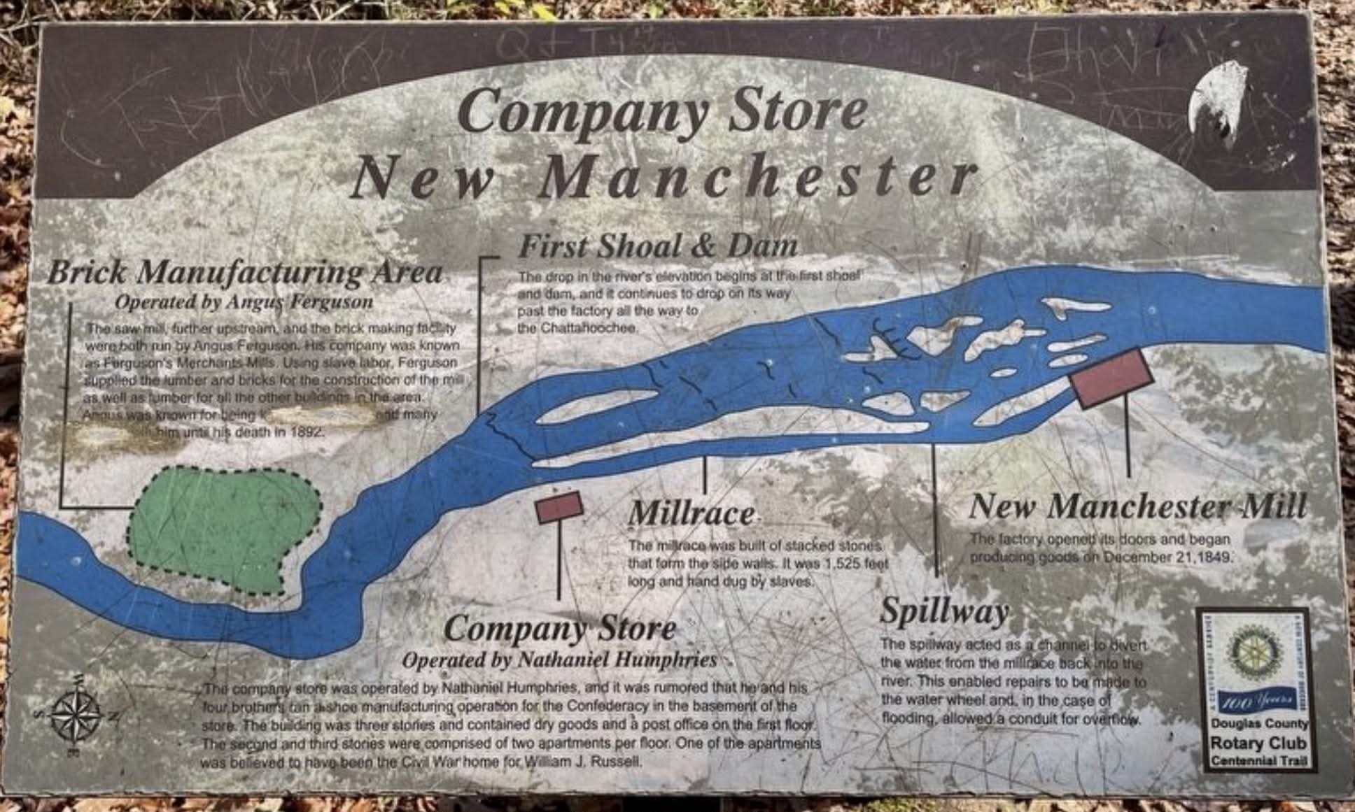 Only about a mile downstream from Ferguson’s mill another industrial enterprise soon appeared in the late 1840s that would transform the landscape of Sweetwater Creek involving former Georgia governor Charles J. McDonald and his business associates. The operation began as the Sweetwater Manufacturing Company and later became known as the New Manchester Manufacturing Company.